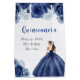 This quinceanera birthday gift bag features a beautiful princess in a navy blue ball gown with floral arrangements. This is perfect for a quinceanera birthday party.
