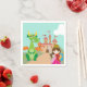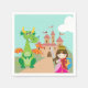 A smiling dragon, a castle, and a cute little princess carrying her own shield and sword. A coordinating set of paper plates and invitations available.Another version for boys is available also