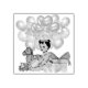 Illustration of an adorable baby girl dressed in pink, with hair in buns with pink bows and princess tiara. Surrounded by toys and with pink and gold balloons above with stars and moon banner. Cute gift for expecting parents, baby shower, gender reveal, or baby birthday gift.