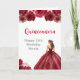 This quinceanera birthday card features a beautiful princess in a burgundy red ball gown with floral arrangements. This is perfect for a quinceanera birthday party.