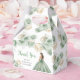 This quinceanera thank you favour box features a beautiful princess in a sage green ball gown with floral arrangements. This is perfect for a quinceanera birthday party.