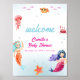 Princess Mermaid Ocean Coral Baby Shower Welcome Poster