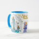 Sketch Mug featuring the animated character, Princess Odette, from the classical Swan Princess film. Its rim and handle are light blue which makes coloristic contrast to the white surface of the mug with black shapes of drawn characters placed on it and makes reference to parts of the character's outfit. Includes the official Swan Princess logo. This design is also available on two sizes of plates and makes part of a bigger dining collection. Look for its other parts in the Swan Princess Zazzle store!