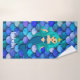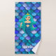 Ocean blue and nautical theme. Blue and purple mermaid scale pattern. With a pretty mermaid princess with a tiara. Template for a name, white letters.