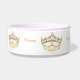 This crown with heart embellishments, for a queen or a princess, was created by Kristie Hubler, for a dog, "Queenie", in 2001, and was added to this dog bowl