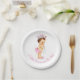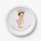 Adorable princess baby girl wearing pink ruffle pants and string of pearls princess baby shower plates. These cute princess baby shower paper plates can be customised with text in the font style and colour of your choice, and you can choose your own background colour.
