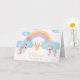 Magical rainbow unicorn day on the way pastel dusty blue, pink blush and yellow gold watercolor colourful hand painted child birthday photo folded invitation with a trendy princess crown and faux gold typography script. +++++++++++ Perfect for little girls' birthday! ++++++++++++ Easy to personalise with your kid's photo and details on the front and inside.