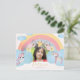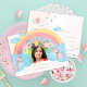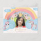 Magical rainbow unicorn day on the way pastel dusty blue, pink blush and yellow gold watercolor colourful hand painted child 5th birthday photo invitation postcard with a princess gold crown and faux gold typography script. +++++++++++ Perfect for girls! ++++++++++++ Easy to personalise with your kid's photo and details on both sides.
