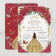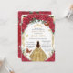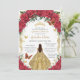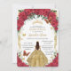 Princess Quinceañera Red Roses Floral Gold Dress Invitation