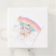 Elegant castle and rainbow in pastel colours with whimsical fonts.