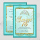 Princess Sweet 16 Teal Blue Gold Birthday Party Invitation