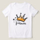 This elegant T-shirt design showcases a beautifully illustrated princess tiara, embellished with sparkling gemstones and intricate detailing. The crown is made of rich gold and pastel colors, creating a royal and exotic look. Under the crown, the words "PRINCESS" are elegantly written, adding a touch of charm.