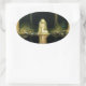 Princess Tuvstarr with long, blonde, wavy hair sitting in the forest, looking down at her reflection in the dark waters. Beautiful watercolor by John Bauer. Illustration for the Swedish folktale "The story of Skutt the moose and little Princess Tuvstarr", written by Helge Kjellin in 1913.