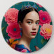 An image of a princess with a blue tiara. This is an AI generated artwork with a floral theme.