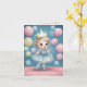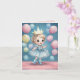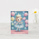 A charming digital watercolor illustration of a happy little girl with curly blonde hair, dressed in a glittery pale blue party dress and matching boots. She wears an oversized golden crown and holds pastel balloons in soft shades of pink, yellow, and blue. The backdrop features a dreamy deep blue sky sprinkled with tiny sparkles and floating balloons, while the girl stands on a rosy pink floor. The scene has a fairytale-like quality, full of warmth, joy, and celebration.