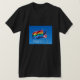 T-shirt featuring a billowing rainbow Pride flag along with an American flag, set against a brilliant blue sky. Celebrating a welcoming, diverse America. Photographed at Cherry Grove on Fire Island. Part of the Pride Collection.