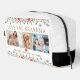 Cherish memories and style on the go with our custom dopp kit. Framed by a soft floral design on a clean white background, one side showcases a personalised monogram and name in elegant script, alongside three of your chosen family photos. The reverse side features the heartfelt message "Love You Grandma / Mum" with space for three more photos, making every outing a reminder of treasured moments. Perfect for organising essentials, this kit is a thoughtful gift for any occasion, keeping loved ones close no matter where life takes her.