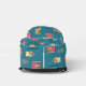 This stylish cute sling bag features a vibrant teal background adorned with a playful pattern of woodland animals (dear, fox, racoon, bear, kola, rabbit) peeking out of windows. The design is reminiscent of a cosy winter scene, with snowflakes gently falling.