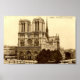 A print of Notre Dame in Paris, reproduced from an old postcard.