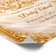 An extraordinary newborn invitation design that blends childhood innocence with palace-like grandeur. The design features a soft, artistic silk background embracing a joyful baby's smile, framed by an intricate 3D gold filigree border. The corners are adorned with hyper-