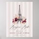 Welcome guests to your Parisian-themed baby shower with this printable Bonjour Bébé sign from Redwood & Vine Design Co. Featuring soft blush pink stripes, a hand-painted Eiffel Tower, and romantic burgundy florals, this sign is perfect for fall or winter showers celebrating a baby girl. Simply download, print, and display to add instant elegance to your event setup. Or, choose professional printing and shipping with Zazzle.