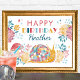 Part of the Disco Garden Party collection of birthday stationery and supplies, this printable birthday sign is a fabulous addition to your party decor! Order and use as additional signage to make the birthday girl feel special, or choose instant download to print from home! Print and frame for tabletop decor, or print on edible paper and use as a cake topper! Featuring cute, pastel florals and an adorable disco snail, this design combines retro colours with whimsical cottage core elements for a truly one of a kind birthday theme!