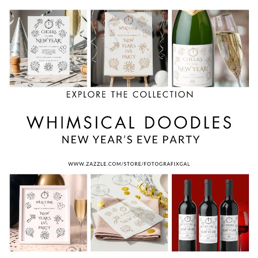 Printable Doodles Black Welcome to New Year Party Poster