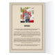 Very nicely done exactly what it looks like doesn't need a frame to stand it up and right size without overbearing the items on the table. Exactly like the picture turn out very clear and sharp