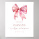 Printable Modern Pink Coquette Bow Script Welcome to Baby Shower. Available digitally and printed. Minimalist style with a set non-editable script for Baby Shower and easily personalise the rest of the text to your details.
