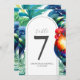 Celebrate your special day with our captivating Key West-inspired table number signs, featuring Sol the Rooster and lush palms in vibrant watercolors of red, blue, yellow, and green. These table top signs are your canvas to personalise—simply use the template to add your names, wedding date, and table numbers. Choose between beautifully printed cards or opt for our convenient printable table numbers.