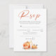 Printable Terracotta Orange Pumpkins Fall Candle QR Code. Available digitally and printed. A row of pumpkins and cosy burning candle are at the bottom in autumn colours and RSVP is in an elegant set script. The rest of the text you can easily personalise. Add your QR code to your reply page on your wedding website on the back by replacing the QR code on the sample to give your guests the alternative to reply online or post back to you.