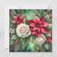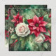 Introducing the Printable Whimsical Winter Poinsettia Evergreen Scrapbook Paper, a beautiful blend of festive elegance and enchanting winter charm. This stunning design features bold red poinsettias intertwined with delicate white roses and lush evergreen sprigs, all set against a rich, deep green watercolor background reminiscent of a forest at dusk. The soft watercolor splashes of green, red, and white blend seamlessly to evoke a magical Christmas atmosphere, with gentle snowflakes and twinkling stars scattered throughout, adding a whimsical touch.