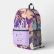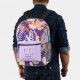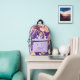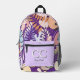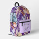Abstract Leaves pattern on purple base. Solid grey colour on front pocket with personalise "Initial", "Name", and "Text".