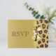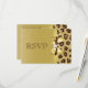 Elegant custom gold formal RSVP flat cards for weddings, bridal showers or birthday party, sweet 16 etc with a beautiful brown and tan printed leopard fur pattern, a cute shiny gold printed bow and ribbon and pretty printed diamond bling jewel. These classy, glamourous, fashionable invites are decorated both sides. Beautiful, chic, trendy, modern invitations. Please note: All invites on Zazzle have flat printed images. Text, font and colour of font can all be customised. If you need assistance customising your product please contact me through my store. I will be happy to help. I have matching products in my store.