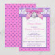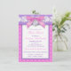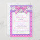 This pretty pink, purple and white floral lace umbrella pattern baby shower invitation has a PRINTED ON pink satin bow with a PRINTED FAUX silver charm with the words "Oh Baby!" on it. All the template text can be customised how you like. If you need any other matching items, please email niteowlstudio@gmail.com.