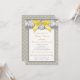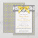 This pretty yellow, grey and white floral lace umbrella pattern baby shower invitation has a PRINTED ON golden yelow satin bow with a PRINTED FAUX silver charm with the words "Oh Baby!" on it. All the template text can be customised how you like. If you need any other matching items, please email niteowlstudio@gmail.com.