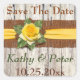 This 1.5" square rustic wedding save the date sticker and/or envelope seal in colours of green, yellow, brown and off white has images of a yellow rose with green leaves on it with a PRINTED yellow satin ribbon, and a FAUX burlap sack band with an aged painted barn wood background on it that matches the wedding invitation shown below. It would be ideal for a rustic country spring, summer, or fall wedding, or for a brown and yellow themed wedding, a yellow and green theme, or an informal shabby chic barn wedding. ****PLEASE NOTE, if you change the shape of the sticker yourself, or if you change the fonts, or the size of the font, some of the design and/or text may get cut-off. Everything will print as you see it on your monitor. I will not see changes you make, and Zazzle will NOT correct anything (typos, mis-alignment etc.). The text is all customisable. You can select a 1.5” or 3” size sticker . If you need help with this product, please email me BEFORE you place your order. If you require any other matching items, please email your request to niteowlstudio@gmail.com.