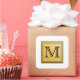 Custom black monogram initial letter in a nice font, for you to change to your choice of letter or numeral. Nonmetallic flat gold colour square. Flat printed image.