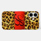 PRINTED LEOPARD FUR RED RUBY GEMSTONE MONOGRAM, Case-Mate iPhone CASE