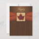 This rich brown and apricot orange striped wedding r.s.v.p. card with a PRINTED ribbon and a framed colourful autumn dried orange and brown maple leaf matches the wedding invitation shown below. It would be ideal for a fall or rustic themed wedding with its sophisticated stripes and earth tones. It is shown here on basic paper. The paper and all text is customisable. I would NOT select the metallic silver or gold papers as they will discolour the design. If you re-size the invitation, or if you change fonts, or the size of the font, some of the design and/or text may get cut-off. Everything will print as you see it on your monitor. I will not see your invitation, and Zazzle will NOT correct anything (typos, mis-alignment etc.). The text and paper is all customisable. If you need help with this invitation, please email me BEFORE you place your order. If you require any other matching items, please email your request to niteowlstudio@gmail.com.