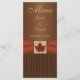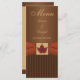 This orange and brown striped menu card on rack card stock has a PRINTED ribbon and a framed look dried maple leaf on it that matches the wedding invitation shown below. It has a high gloss front and a matte finish back. If you would like a menu on paper to match your invitations, or on a greeting card, just email your request to the address below. ***PLEASE NOTE that if you change the fonts, or the size of the font, some of the design and/or text may get cut-off. Everything will print as you see it on your monitor. I will not see changes you make, and Zazzle will NOT correct anything (typos, mis-alignment etc.). The text is all customisable. If you need help with this product, please email me BEFORE you place your order. If you require any other matching items, please email your request to niteowlstudio@gmail.com
