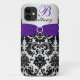 This modern, personalised, black and silver grey damask Case-Mate Barely There™ iPhone 5 Case with a purple PRINTED ribbon and PRINTED jewels brooch on it, has a spot for you to add your name and monogram. ***PLEASE make sure that your initial and name are centred where you want them, as it will print as it appears on your monitor. If you need assistance personalising this case, email niteowlstudio@gmail.com.