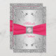 PRINTED RIBBON Hot Pink, Silver Wedding Invite 2