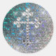 Faux sparkle gemstone diamond rhinestone printed image of a cross, with a background of printed faux silvery with blue sparkle circle pattern. A stylish street and urban look with a bit of inspiration. Blue and silver glitter look flat printed graphic image. All Designs Copyright © 2012 www.CuteComfy.com