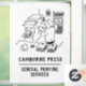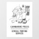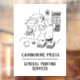 Window cling sign for a Printer and Printing Services Company showing a Printer at a Printing Press. Customise with your own wording.