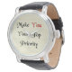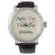 Bought last minute for hubbys 65th birthday. Arrived in NZ by express on the day. Loves it and so does everyone he’s shown it to. Lovely watch and strap and words small but clear. Thank you 😍. Great. Small but clear.