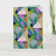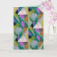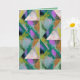 Abstract of multiple prisms create an intriguing design in shape and colour. The blending of metallic paints of many colours along with shading gives it a 3 dimensional effect. The Forest green background works to bring the multi-coloured prisms forward as if they were floating. Change the inside text to your own.