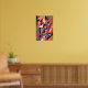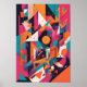 An energetic explosion of bold geometric forms and vivid colours. This abstract piece plays with layers, lines, and symmetry to create a dynamic sense of rhythm and movement. Bright hues of magenta, teal, orange, and black collide in an urban-meets-digital aesthetic, evoking the visual language of modernity and innovation.