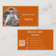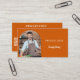 A burnt orange coloured background. Personalise and add your title, business name/name and text on front. White text. An arch shaped photo frame.