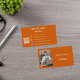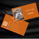 A burnt orange coloured background. Personalise and add your photo, title, business name/name and text on front. White text.